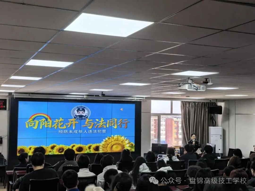 为进一步增强中职学生法治意识与自我保护能力,引导青少年远离违法犯罪,盘锦高级技工学校特邀盘锦市兴隆台区公安分局刑侦大队禁毒中队警官为我校学生开展了一场主题为“向阳花开 与法同行”的法治安全教育讲座。