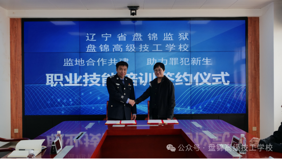 随后,我校校长高瑜与盘锦监狱教育改造科科长董庆阳作为双方代表,共同签署职业技能培训合作协议,明确双方在培训实施、教学管理、资源保障等方面的职责分工,标志着我校与盘锦监狱的校监合作正式落地,开启技能赋能新生的全新篇章。