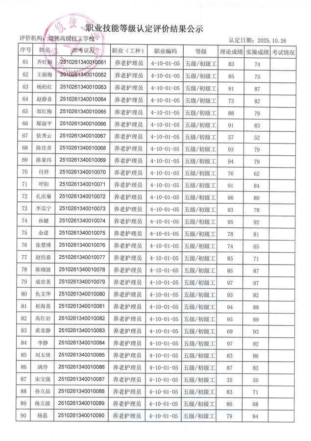 盘锦高级技工学校职业技能等级认定成绩公示(2025年第5批)