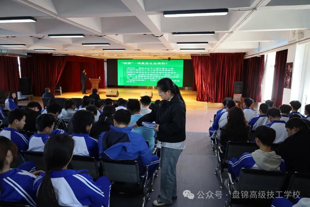 3月24日是第30个“世界防治结核病日”,为进一步普及结核病防治知识,加强学校结核病防控工作,提高学生群体对结核病的认知水平和自我防护意识,市卫健中心3月24日下午到盘锦高级技工学校开展以“全面行动 全力投入 全民参与 终结结核”为主题的健康巡讲进校园活动。此次讲座由市第三人民医院王志刚副院长主讲,通过结核病的传染源、结核病的传播途径、学生群体如何预防、得了结核病如何治疗等方面讲解。